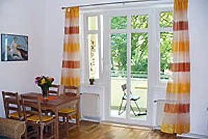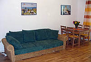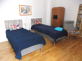 Unterkunft: | 2 Zimmer, 2. OG. Die Zimmer können getrennt gebucht werden. Modernes Bad mit Du/Wanne für beide Zimmer gemeinsam. 1. Zimmer mit Balkon: mit Doppelschlafcouch mit Lattenrost (1,60 x 2,00 m), Essplatz, TV; 2. Zimmer mit Doppelbett, das als 2 Einzelbetten gestellt werden kann, Essplatz, TV. Küche ist gleichzeitig Wirtschaftsraum der Vermieter, Waschmaschinennutzung nach Absprache. Kostenfreie WLAN-Nutzung | |||